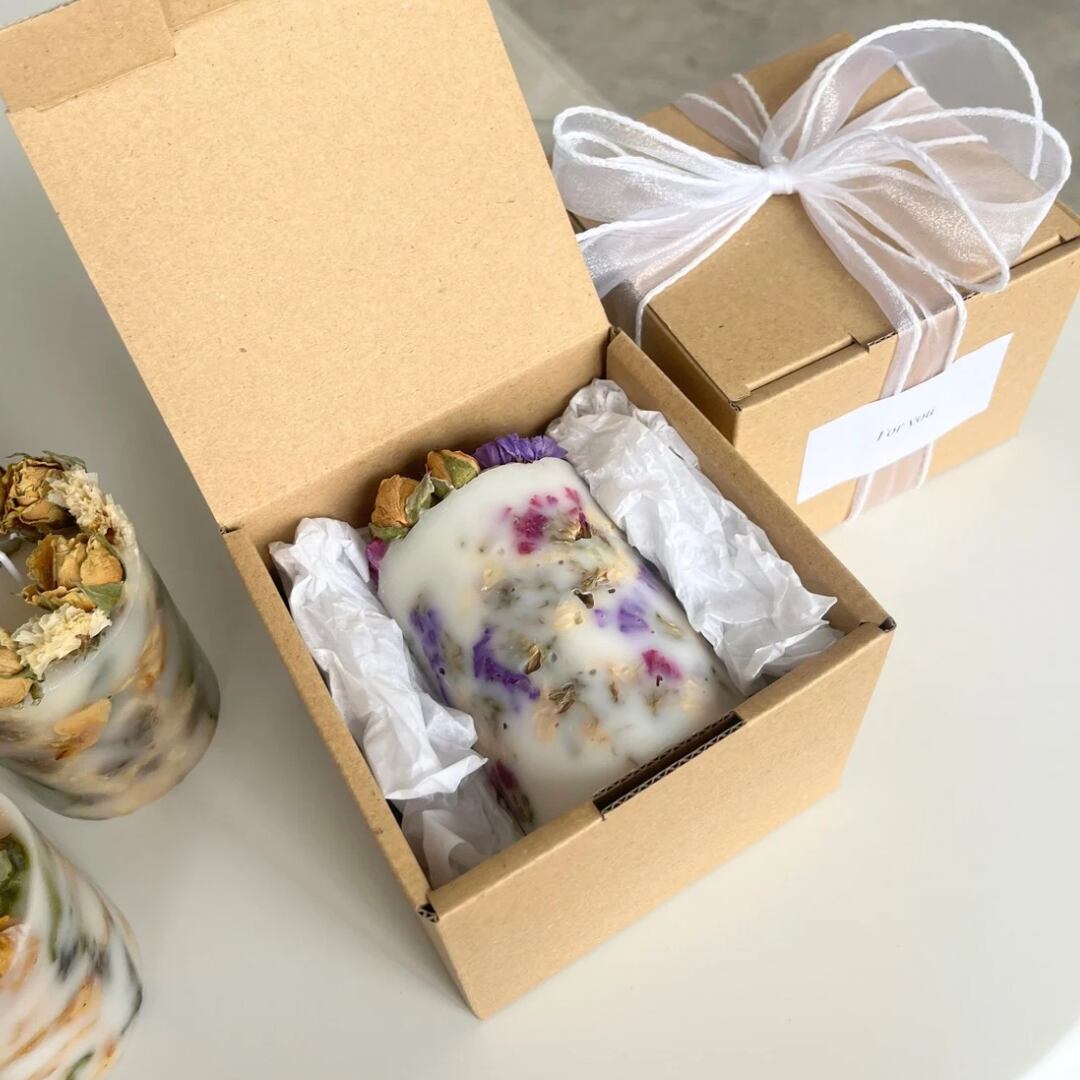 全てハンドメイドで作られたソイキャンドルです。 本物のバラを使用しています。 【サイズ】 高さ:9cm×直径:6cm 【メッセージ種類】 ①メッセージなし/リボンのみ ②For you/明朝体 ③Happy birthday/明朝体 ④Congratulation/明朝体 ⑤Happy anniversary/明朝体 メッセージを自由にオーダーしたい場合は別ページから ご注文ください。また筆記体メッセージも用意しています。