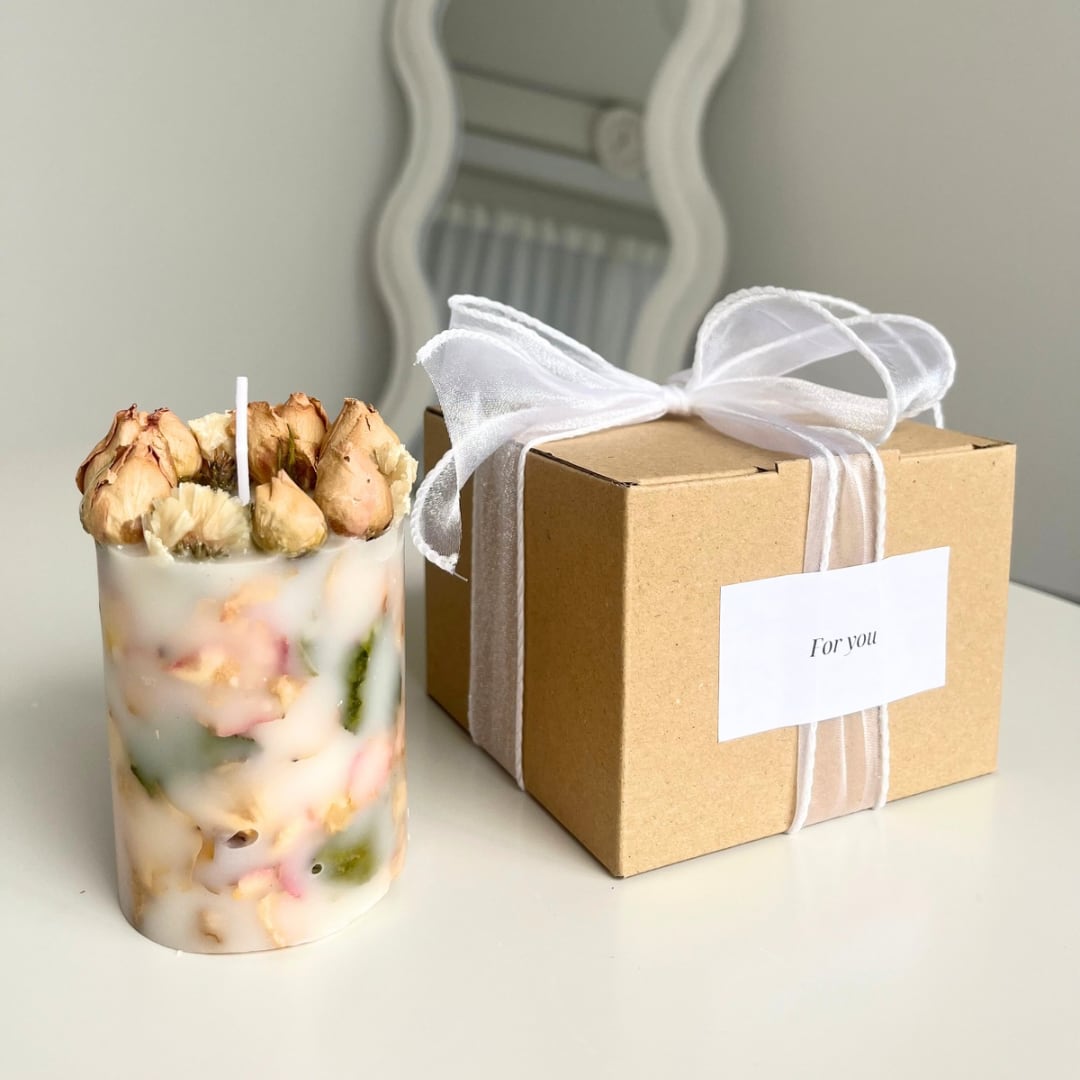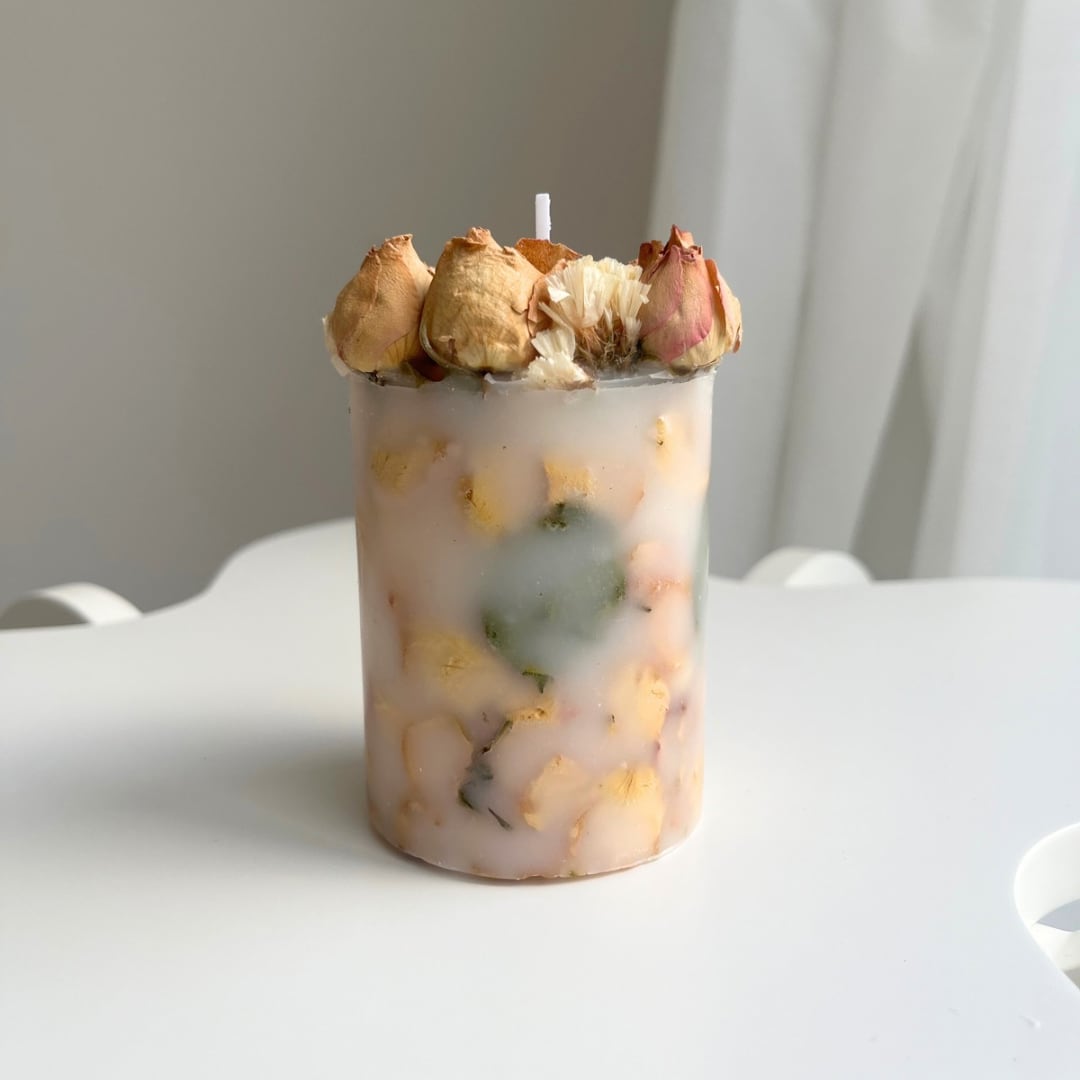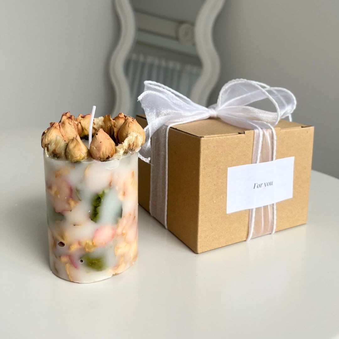 全てハンドメイドで作られたソイキャンドルです。 本物のバラを使用しています。 【サイズ】 高さ:9cm×直径:6cm 【メッセージ種類】 ①メッセージなし/リボンのみ ②For you/筆記体 ③Happy birthday/筆記体 ④Congratulation/筆記体 ⑤Happy anniversary/筆記体 メッセージを自由にオーダーしたい場合は別ページから ご注文ください。また筆記体メッセージも用意しています。